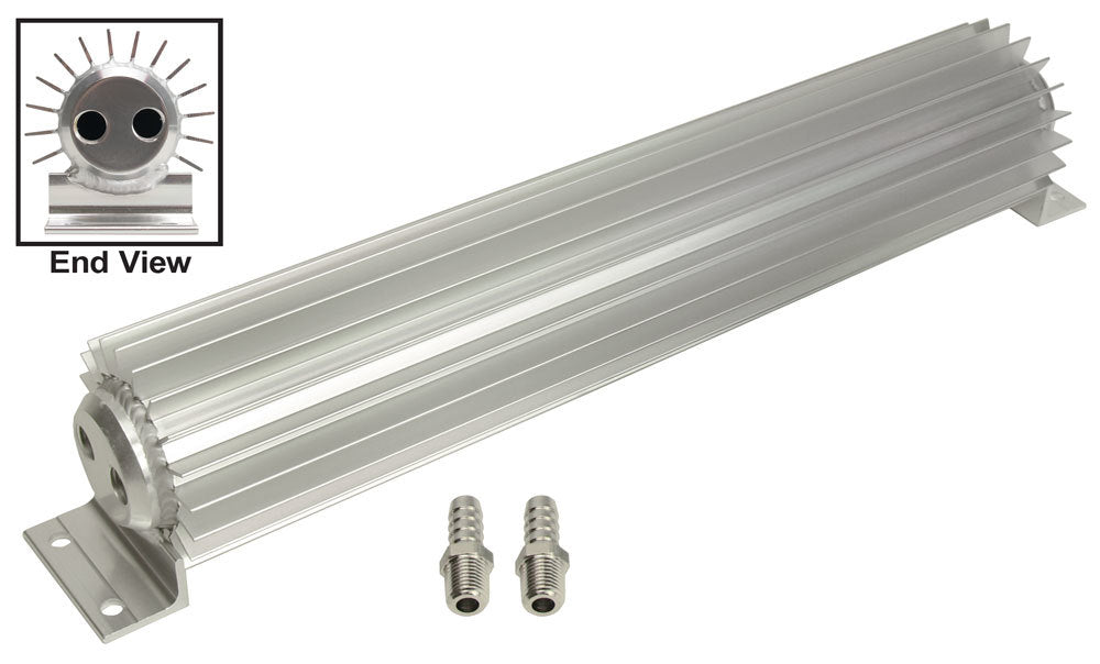 DERALE Dual-Pass Heat Sink Cooler 15in 13261 Fluid Cooler - Dual Passenger - 17.25 x 2.188 x 3.25 in - Heat Sink - 1/4 in NPT Female Inlet / Outlet - 3/8 in Hose Barb Adapters - Aluminum - Natural - Universal - Each