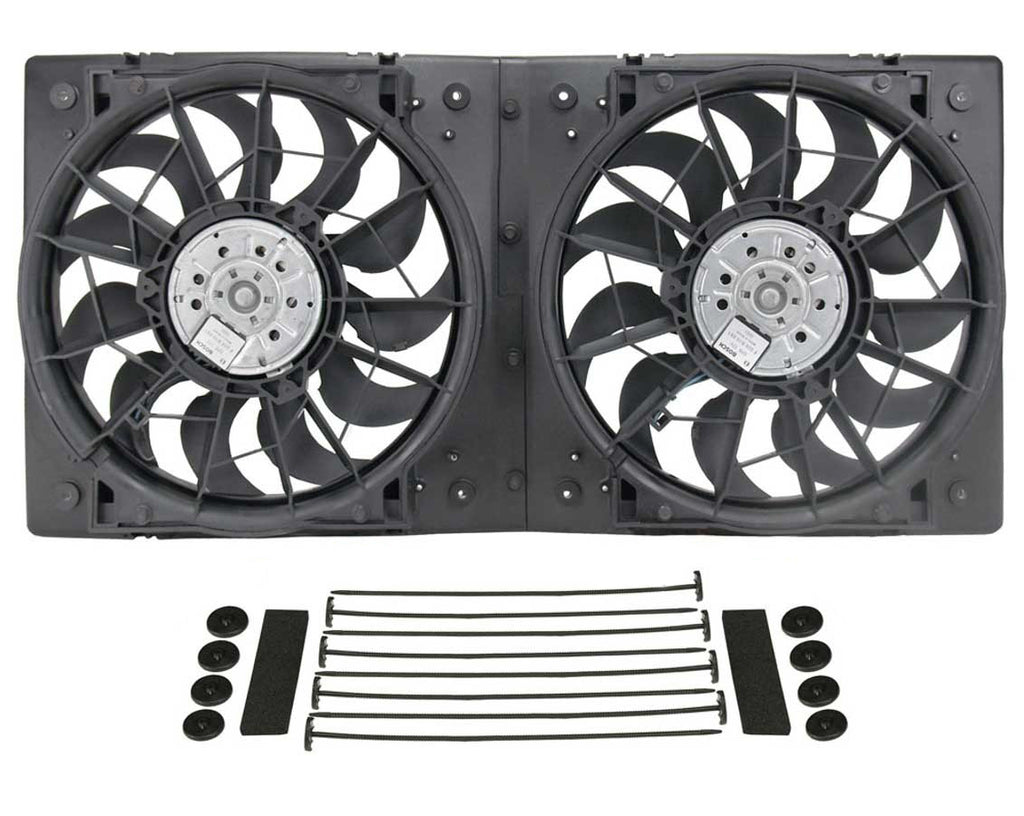 DERALE 13in Dual High Output RAD Fans Puller 16928 Electric Cooling Fan - HO RAD - Dual 13 in Fan - Puller - 4000 CFM - 12V - Curved Blade - 28.625 x 13.875 in - 3.25 in Thick - Plastic Shroud - Kit