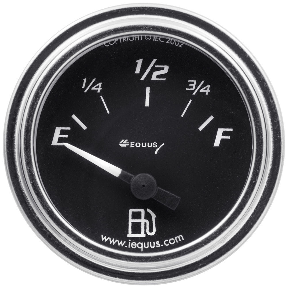EQUUS 2.0 Dia Fuel Level Gauge Chrome E7362 Fuel Level Gauge - 7000 Classic Series - 0-90 ohm - Electric - Analog - Short Sweep - 2 in Diameter - Black Face - Each
