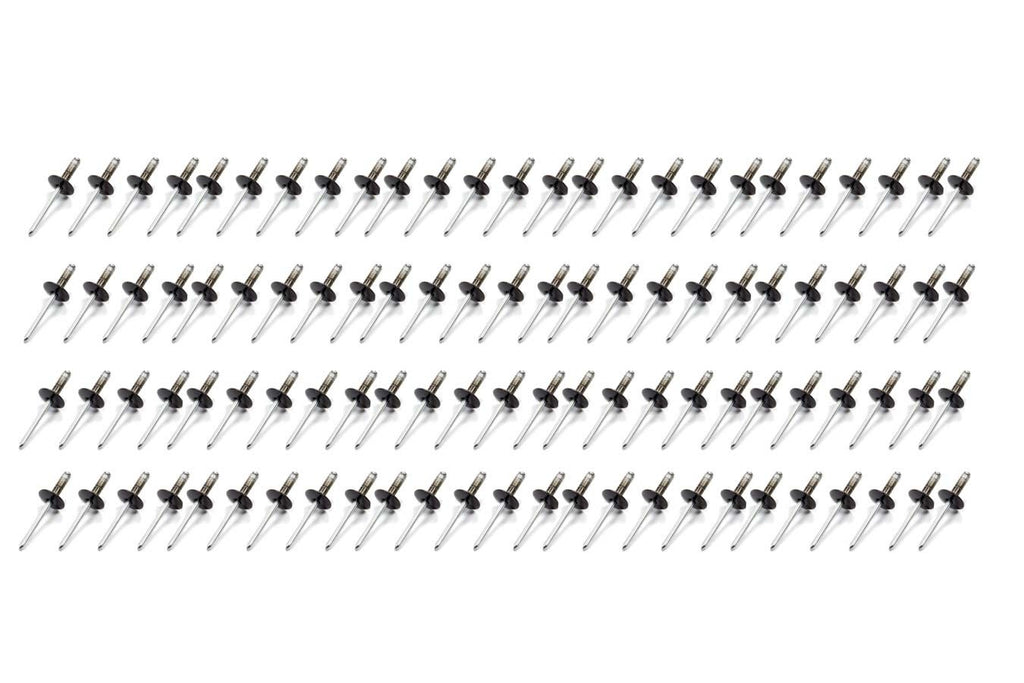 FIVESTAR Lrg Hd Rivet Black Multi -grip 100pk 814B-100L Rivet - Avex Style - 5/8 in Head - 3/16 in Steel Mandrel - 1/2 in Grip Range - Aluminum - Black Powder Coat - Set of 100