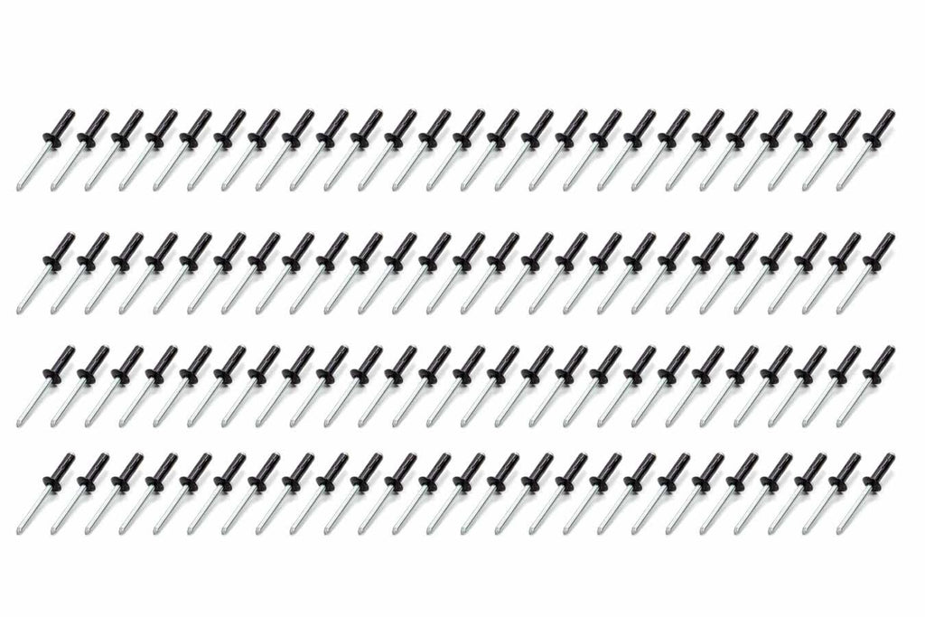 FIVESTAR Sm Hd Rivet Black Multi -grip 100pk 814B-100S Rivet - Avex Style - 3/8 in Head - 3/16 in Steel Mandrel - 1/2 in Grip Range - Aluminum - Black Powder Coat - Set of 100