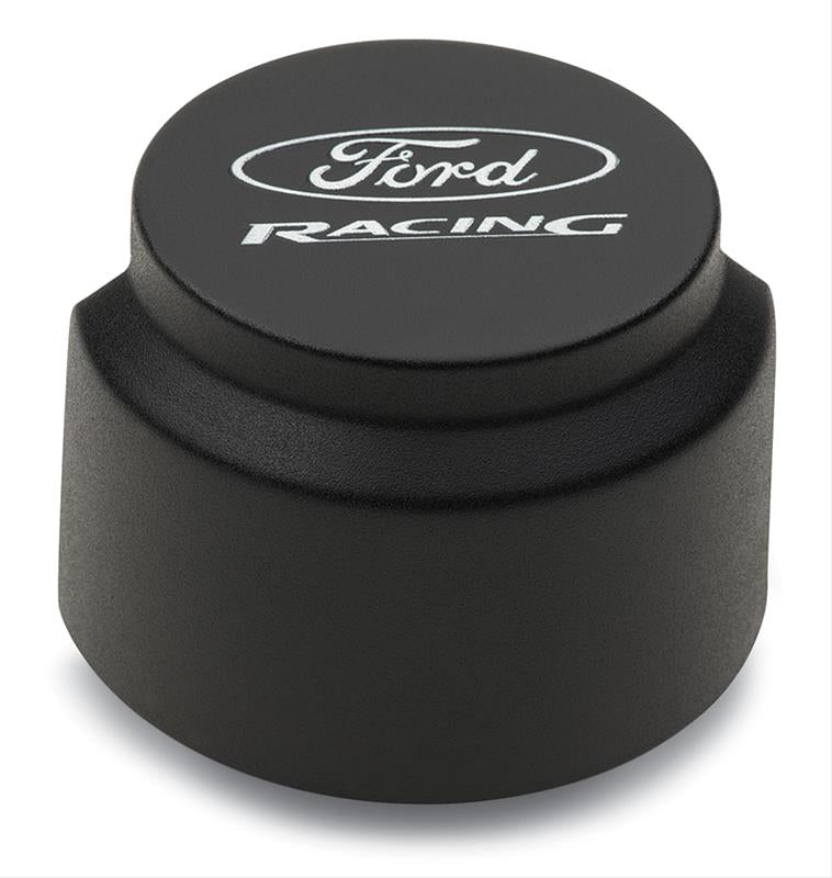 FORD Valve Cover Breather w/ Steel Top Shielded Black 302-233 Breather - Push-In - Round - 1-1/4 in Hole - Half Shielded - Reusable - Ford Racing Logo - Steel - Black Crinkle - Each