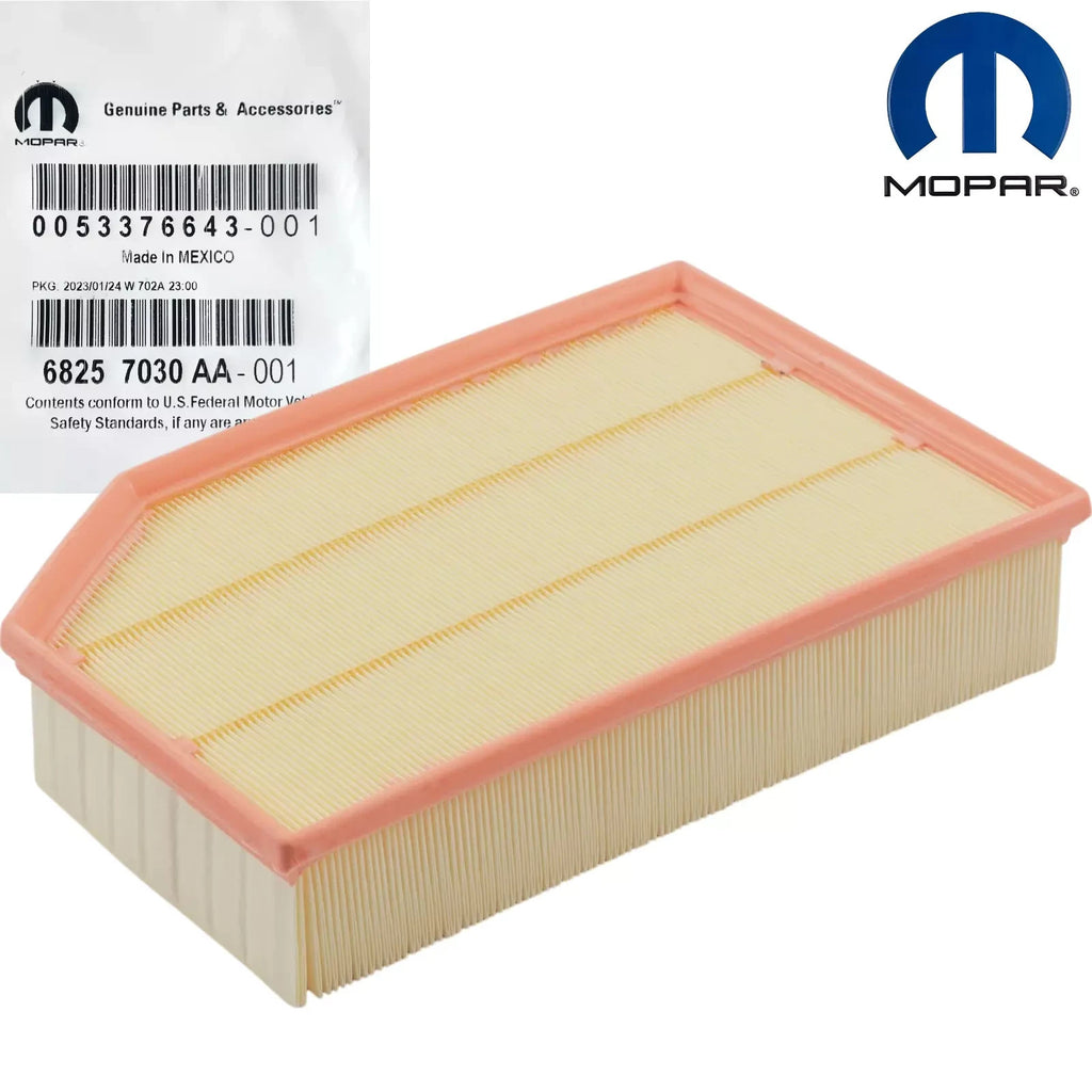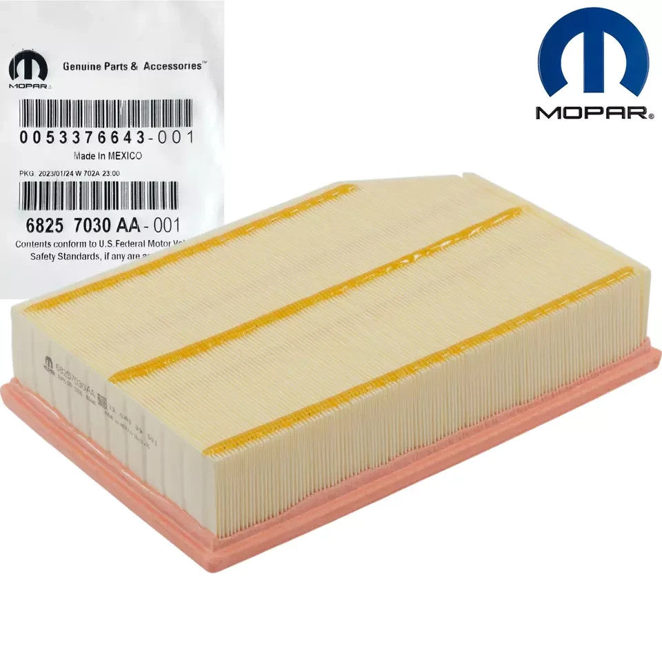 Brand-new OEM Mopar engine air filter, part number 68257030AA. This factory-designed filter ensures precise fit and high-performance air filtration for your Jeep Wrangler (JL) and Gladiator (JT) from 2018 to 2025.