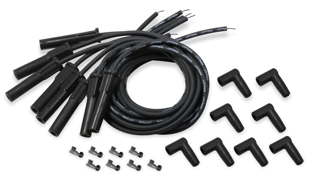 HOLLEY Spark Plug Wire Set Univ GM LS Cut to Fit - Black 561-113 Spark Plug Wire Set - Spiral Core - 8.2 mm - Black - Straight / 90 Degree Plug Boots - Socket Style - Cut-To-Fit - V8 - Kit