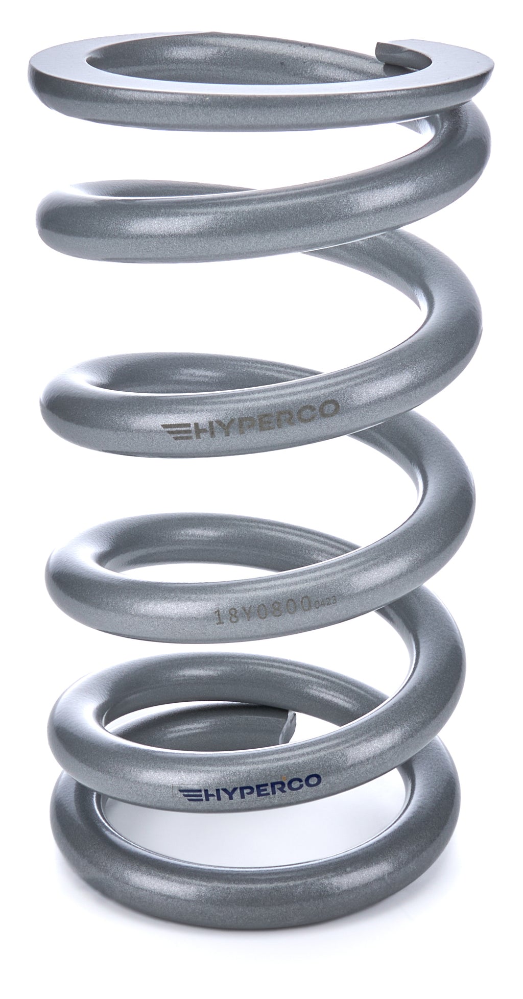 HYPERCO Front Spring 5in ID 9.5in Tall 18Y0800 Coil Spring - Conventional - 5 in OD - 9.5 in Length - 800 lb/in Spring Rate - Front - Steel - Silver Powder Coat - Each