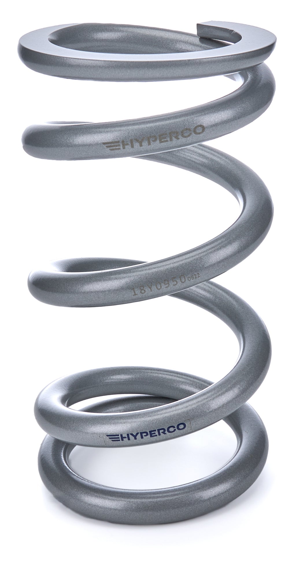 HYPERCO Front Spring 5in ID 9.5in Tall 18Y0950 Coil Spring - Conventional - 5 in OD - 9.5 in Length - 950 lb/in Spring Rate - Front - Steel - Silver Powder Coat - Each