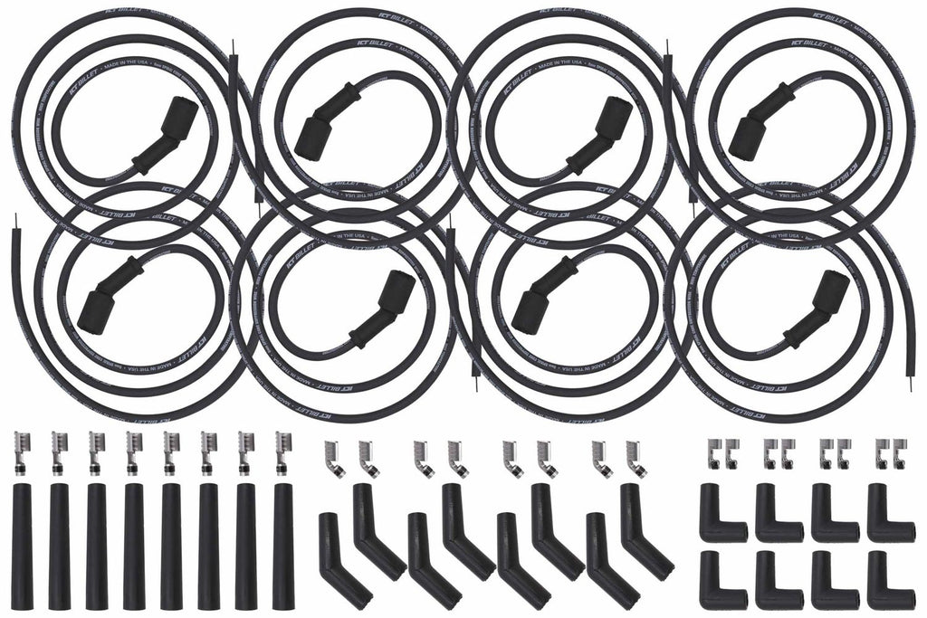 ICT BILLET Universal Spark Plug Wir e Set Remote Coil 551083 Spark Plug Wire Set - Spiral Core - 8 mm - Black - Factory Style Boots / Terminals - GM LS-Series / Gm GenV LT-Series - Kit