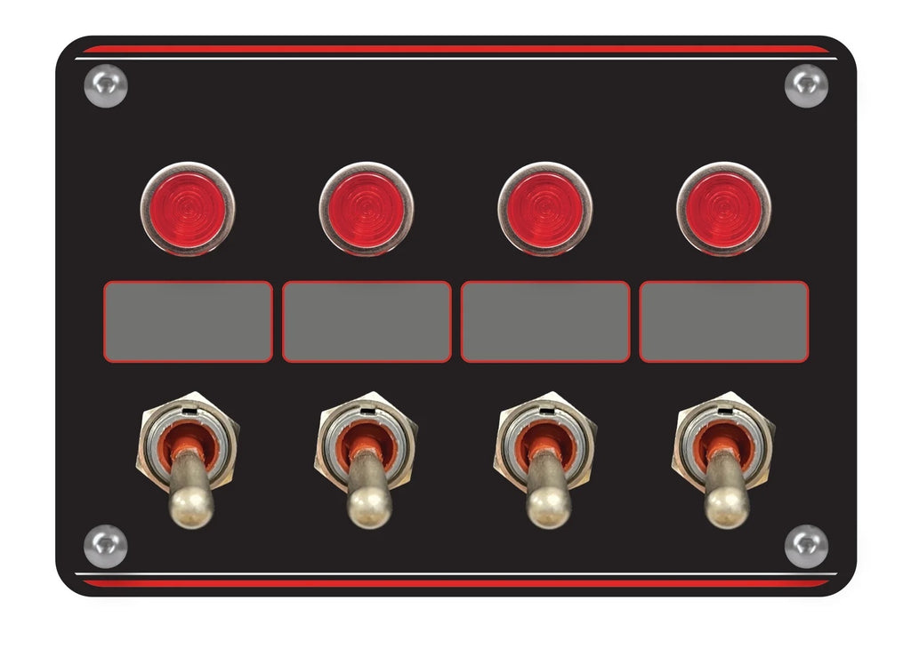 LONGACRE Accessory Panel Black Switch w/Pilot Light 52-48865 Switch Panel - Dash Mount - Elite - 5.2 x 3.7 in - 4 Toggles - Indicator Lights - Black Anodized - Each