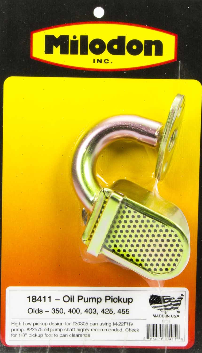 MILODON Oil Pump Pick-Up 18411 Oil Pump Pickup - Street / Strip - Bolt-On - 8-1/4 in Deep Pan - Oldsmobile V8 - Each