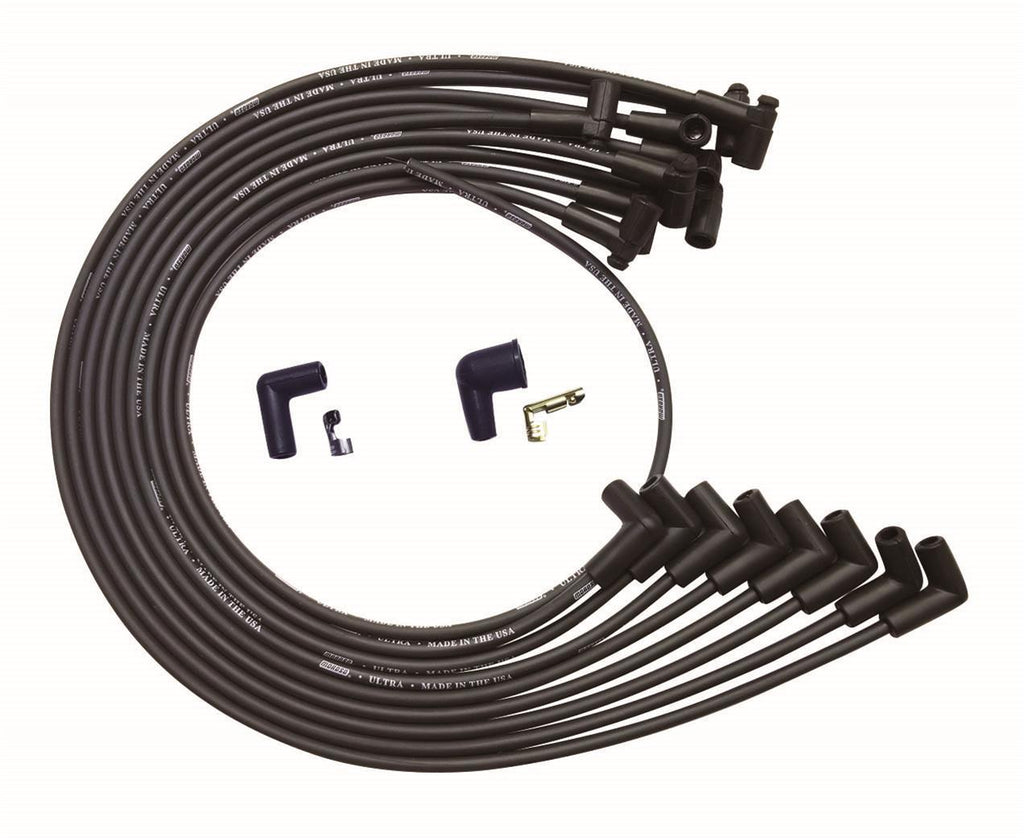 MOROSO Ultra Plug Wire Set BBC Under V/C Black 51043 Spark Plug Wire Set - Ultra - Spiral Core - 8 mm - Black - 90 Degree Plug Boots - HEI Style Terminal - Under The Header - Big Block Chevy - Kit