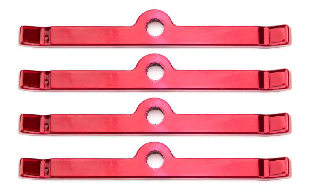 MOROSO V/C Hold Downs-Red 68505 Valve Cover Hold Down Tabs - Steel - Red Powder Coat - Small Block Chevy / V6 - Set of 4
