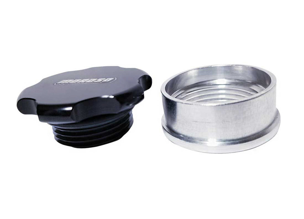 MOROSO Alm Filler Cap & Bung Kit 1.5 OD 85286 Bung and Cap Kit - 1.25 in Opening - 1-1/4-12 in Thread - Weld-On - Aluminum Bung - Contoured Grip - Aluminum - Black Anodized - Kit