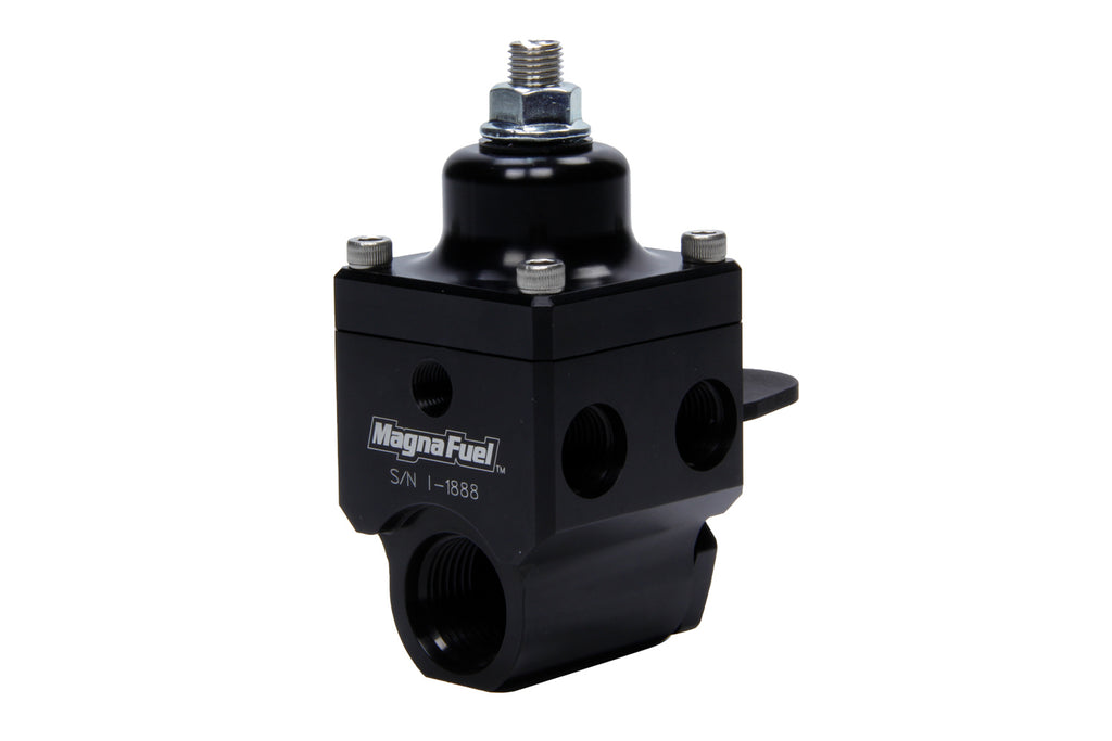 MAGNAFUEL/MAGNAFLOW FUEL SYSTEMS 4-Port Fuel Regulator Black MP-9450-BLK Fuel Pressure Regulator - 4 to 12 psi - In-Line - 10 AN O-Ring Inlet - Four 6 AN O-Ring Outlets - 1/8 in NPT Port - Aluminum - Black Anodized - E85 / Gas / Methanol - Each