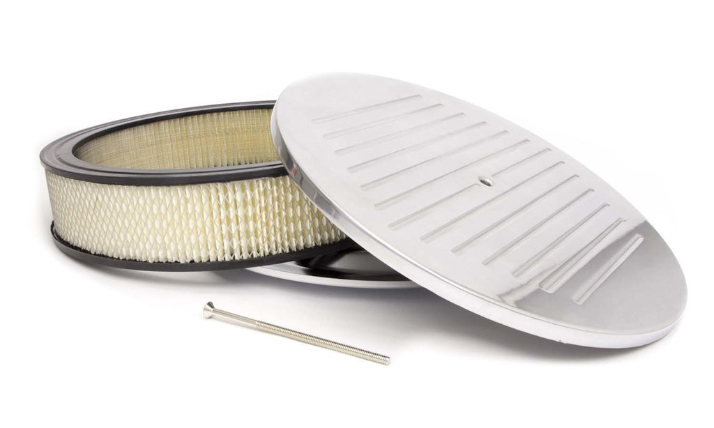 Air Cleaner Assembly - 14 in Round - 3 in Element - 5-1/8 in Carb Flange - Flat Base - Ball Milled - Aluminum - Polished - Kit