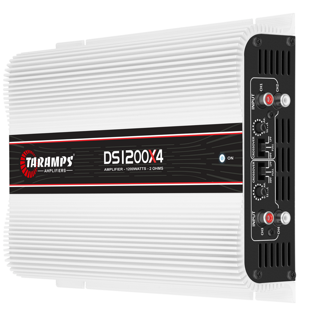 The DS 1200X4 is synonymous with a multichannel amplifier. It has 4 channels of 300 Watts RMS, with a maximum power of 1200 Watts RMS, at 2 ohms, and is compatible with any frequency, that is to say, it is a FULL RANGE amp.