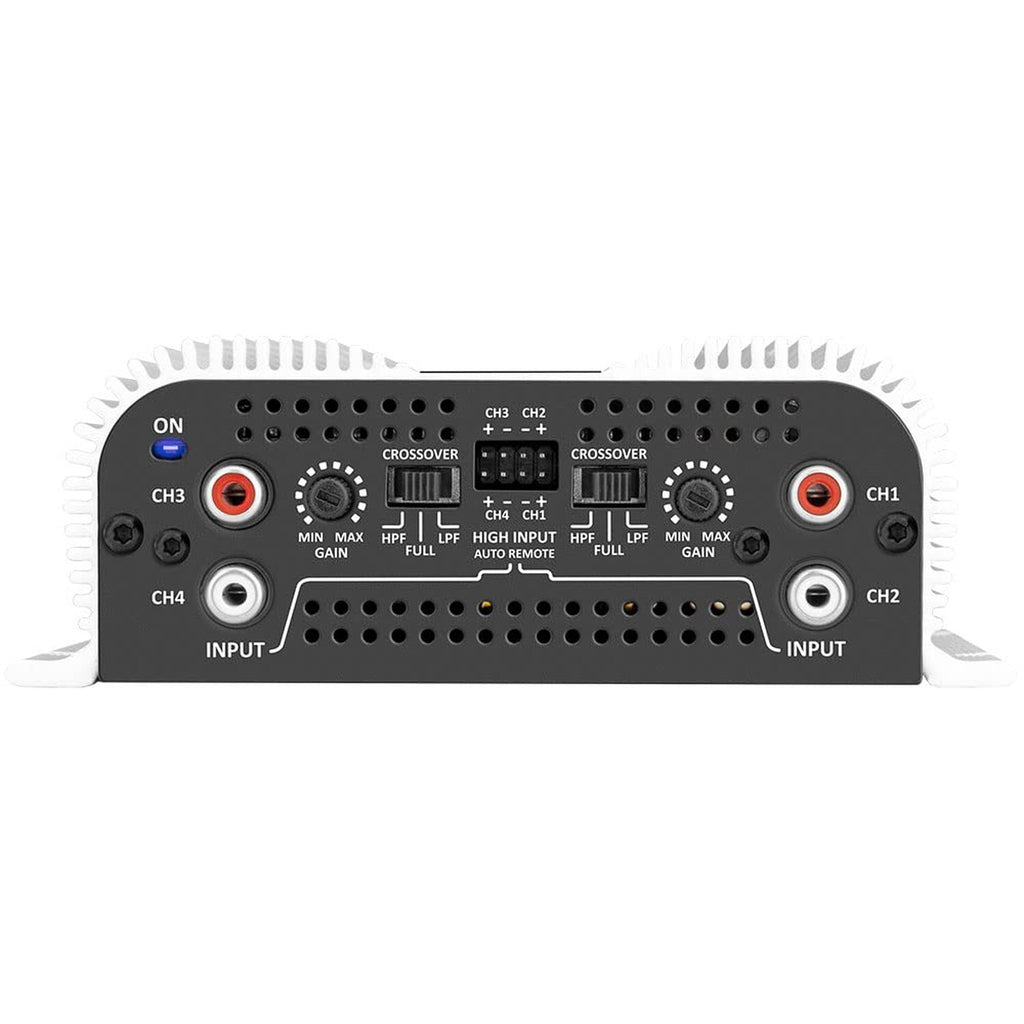 MAXIMUM POWER | @ 14.4 VDC - 2 OHMS: 800W RMS (4 x 200W RMS) @ 14.4 VDC - 4 OHMS: 544W RMS (4 x 136W RMS) 2 Bridged Channels 4 OHMS: 400W RMS (2 x 400W RMS) |