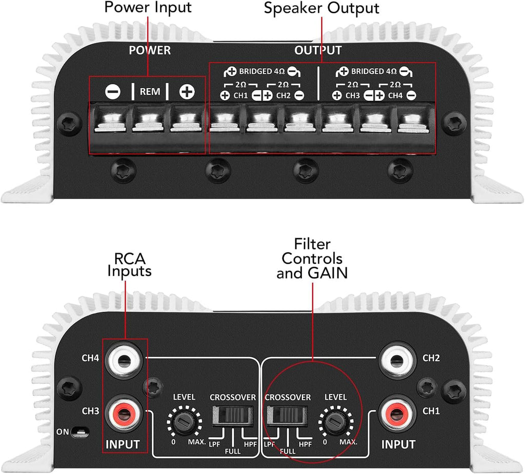 Bridgeable Channels: Combine channels for extra power on subwoofers.