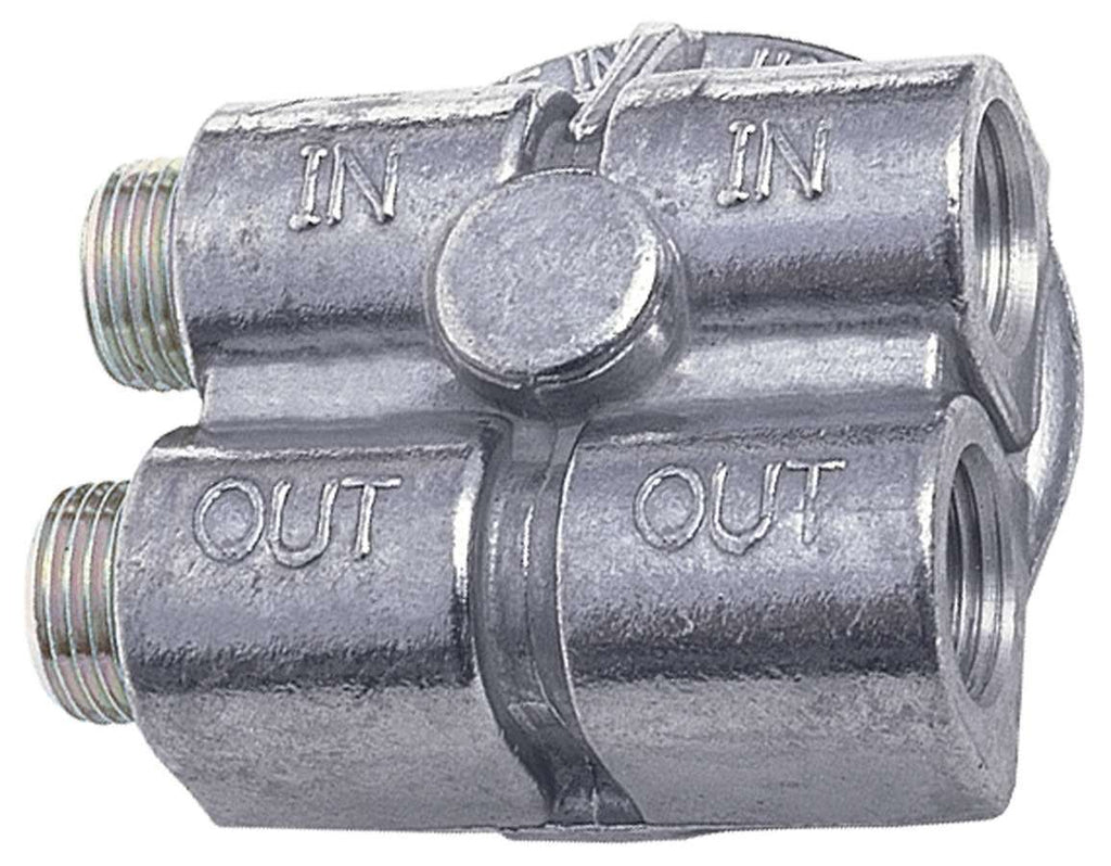 TRANS-DAPT Horizontal Oil By-Pass 1413 Oil Filter Adapter - Bypass - 90 Degree - 3/4-16 in Center Thread - 1/2 in NPT Female Inlet - 1/2 in NPT Female Outlet - Aluminum - Natural - Various Applications - Each