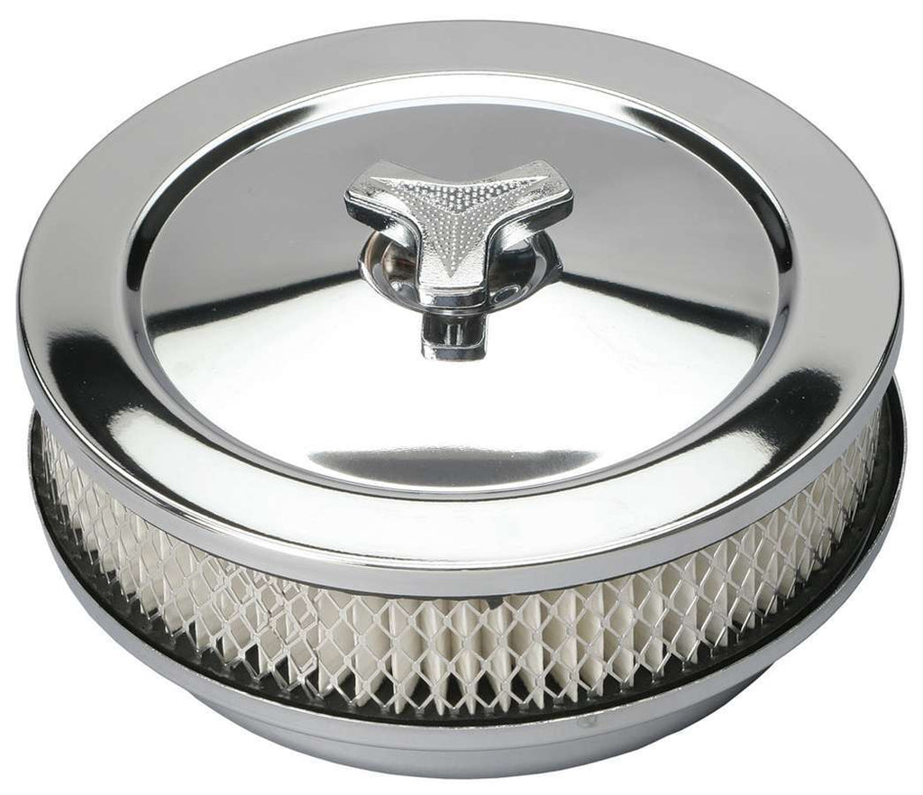 Air Cleaner Assembly - Muscle Car - 6.375 in Round - 1.75 in Tall - 5-1/8 in Carb Flange - Raised Base - Steel - Chrome - Kit
