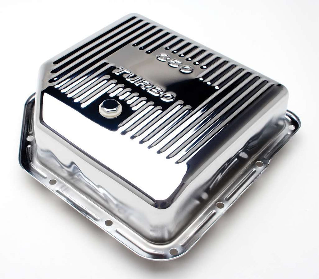 Transmission Pan - Deep Sump - Ribbed - 3.5 in Deep - Adds 2 qt Capacity - Ribbed - Steel - Chrome - TH350 - Each