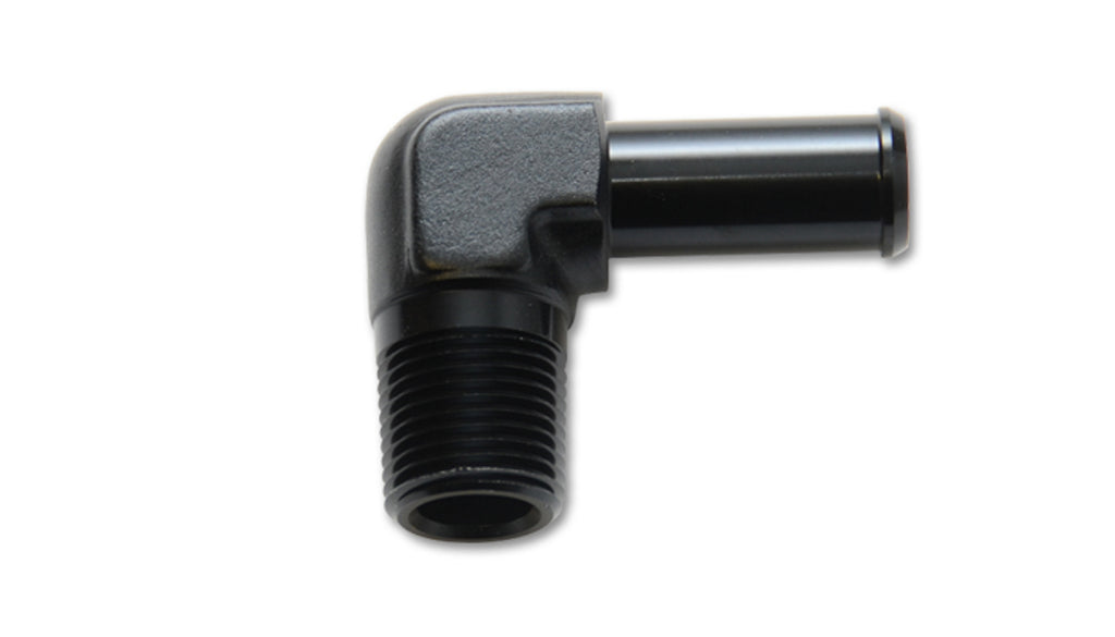 Fitting - Adapter - 90 Degree - 3/8 in NPT Male to 5/16 in Hose Barb - Aluminum - Black Anodized - Each