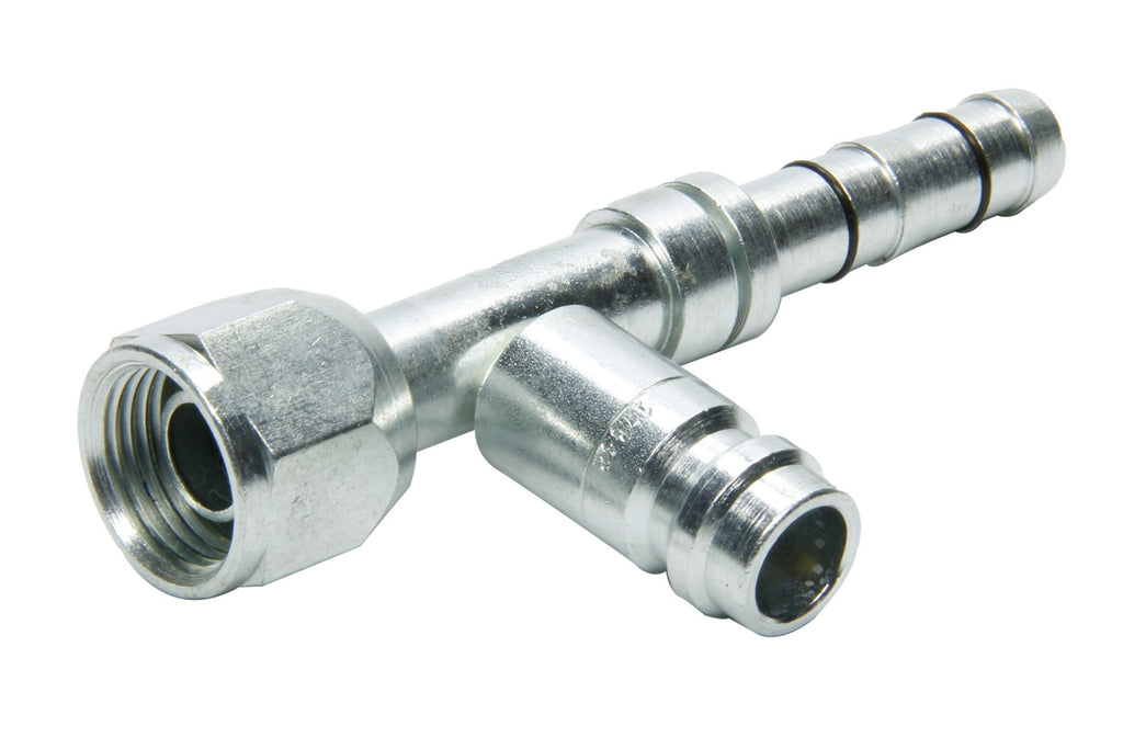 Fitting - Hose End - AC Refrigerant - Straight - 8 AN E-Z Clip to 8 AN Female O-Ring - R134a AC Service Port - Aluminum / Steel - Cadmium / Natural - Each