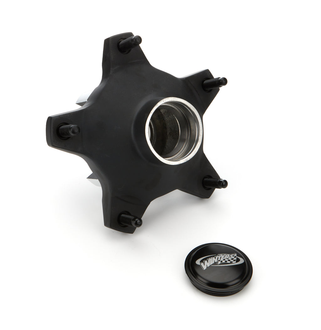 WINTERS Hub Front Wide 5 Black Cap 6606-FX5BK-8208-H Wheel Hub - Front - Wide 5 - Races / Dust Dap / Studs Included - Aluminum - Black Thermal Coated - Each